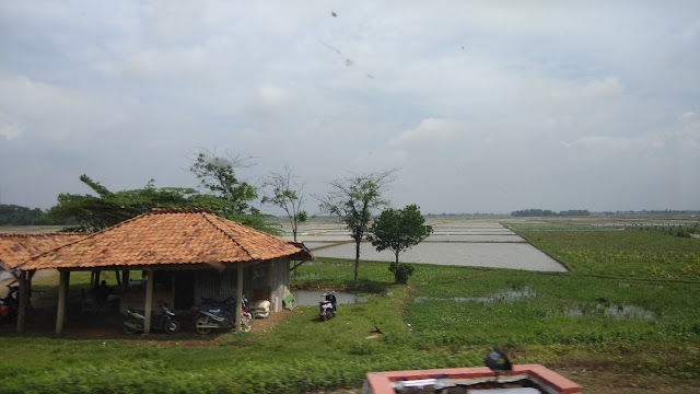 Kolej to najlepszy sposób podróżowania po Jawie. W niektórych miejscach tory dosłownie przebiegają środkiem pół ryżowych. Jadę już tak od kilku godzin i jeszcze mi się ten widok za oknem nie znudził